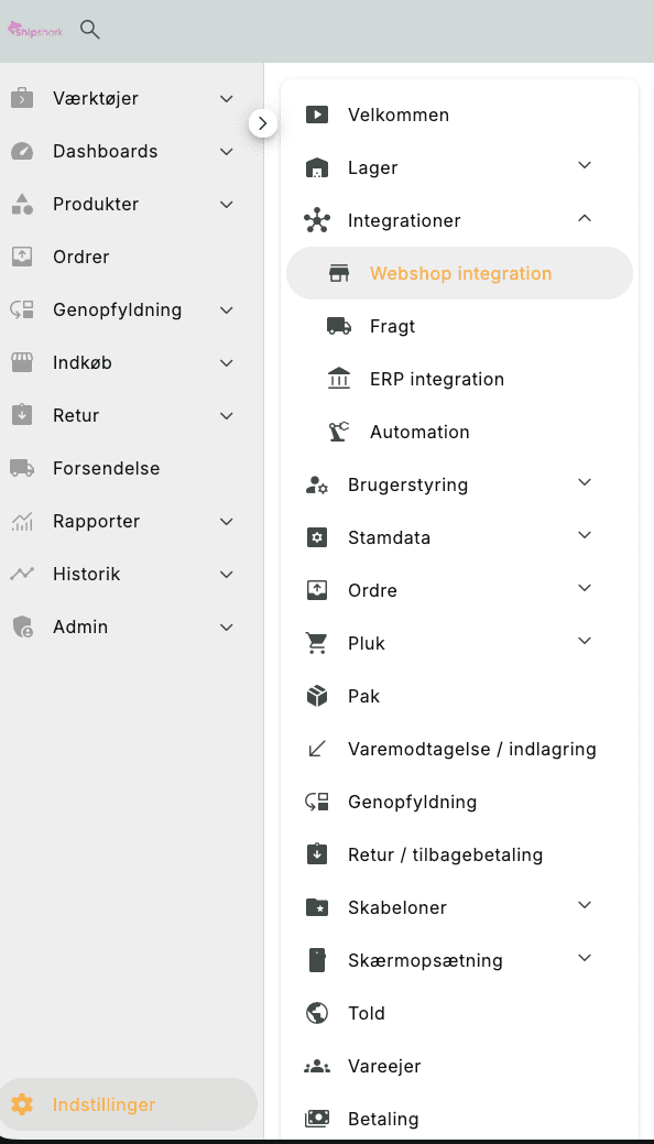 You do this under Settings -> Integrations - Webshop Integration: