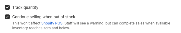 In Shopify, you can continue to sell your products even if you are out of stock. You do this by enabling "Continue selling when out of stock" for each product.
