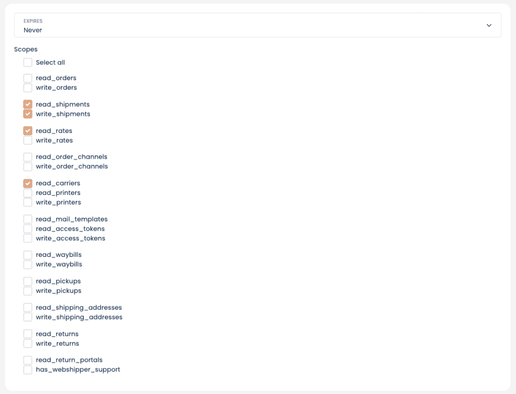 This guide shows you how to set up an API token that is scoped to your shipping methods in Webshipper.